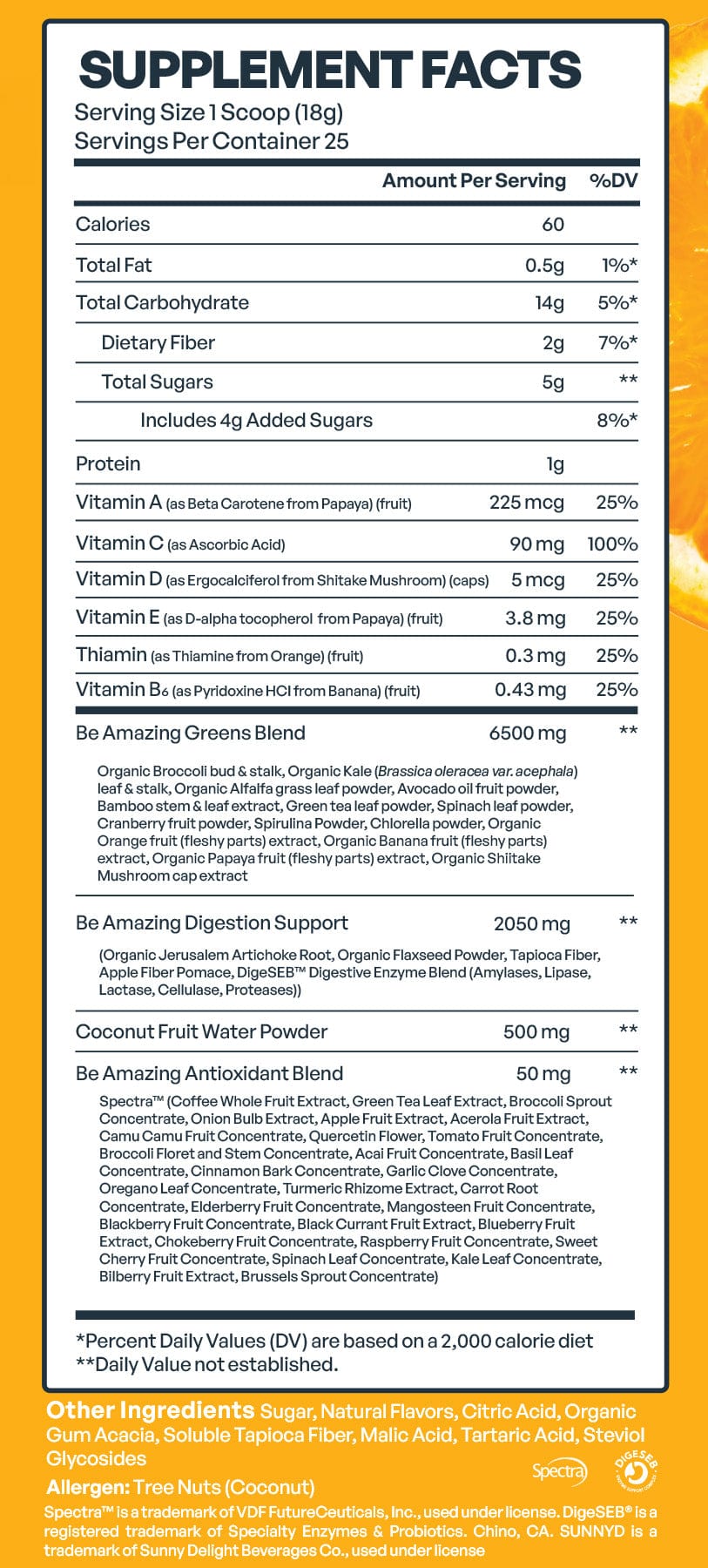 Be Amazing super greens, are plant powered, have multiple micronutrient and health benefits all while tasting amazing.